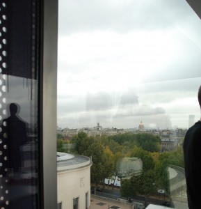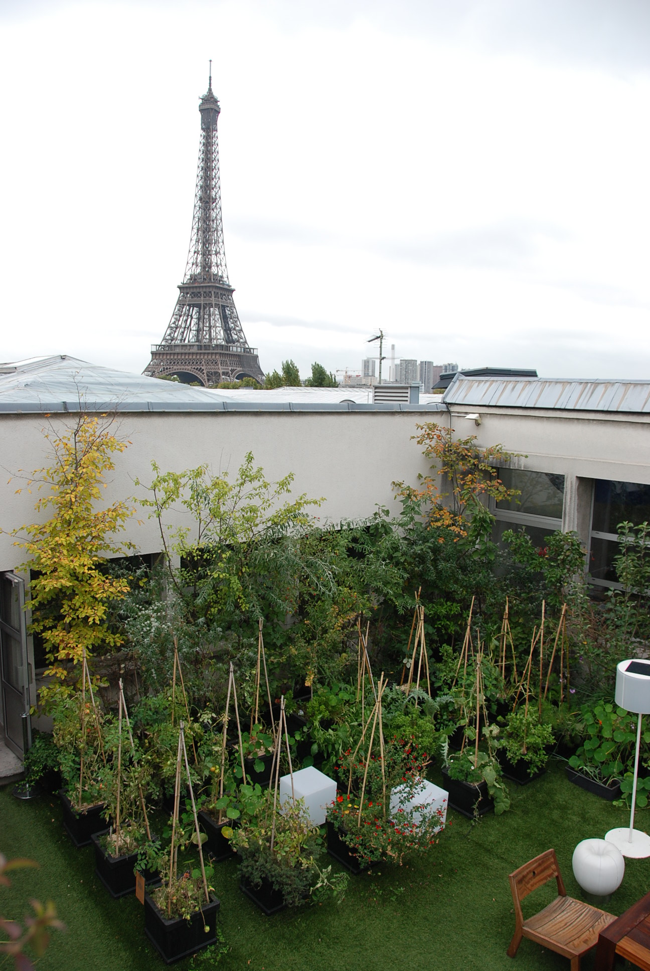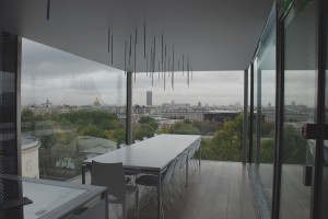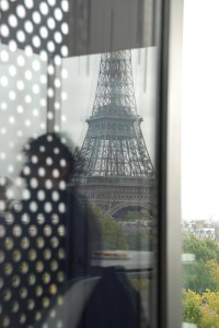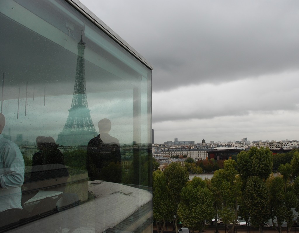 Grâce à Julien (un grand merci), j’ai pu aller prendre mon petit déjeuner sur les toits du Palais de Tokyo, là où sur la photo se trouve le parallélépipède de verre et de métal. On a l’impression d’être dans le vide, avec la Tour Eiffel comme voisine. Expérience d’autant plus intéressante que le restaurant est éphémère.