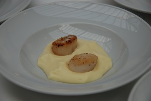 Grâce à Julien encore (un immense merci), j’ai pu assisté à un cours.. Au programme : trois recettes dont une émulsion de pommes de terre aux citrons confits et Saint-Jacques poêlées. Un régal…recette publiée avec l’aimable autorisation du chef..
