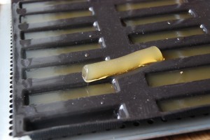 Il restera des fingers de yuzy gélifié qu’on peut découper en morceaux et rouler dans du sucre. Cela donnera une sorte de pâte de fruits, délicieuse mais un peu fragile.