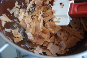 puis on étale le croustillant chocolat et on termine avec le biscuit chocolat.