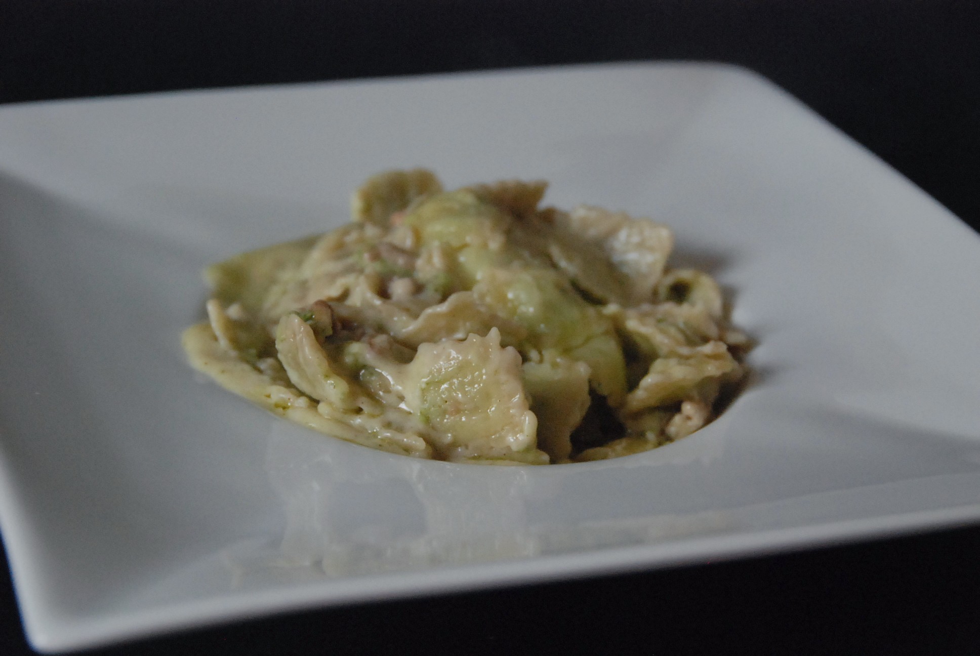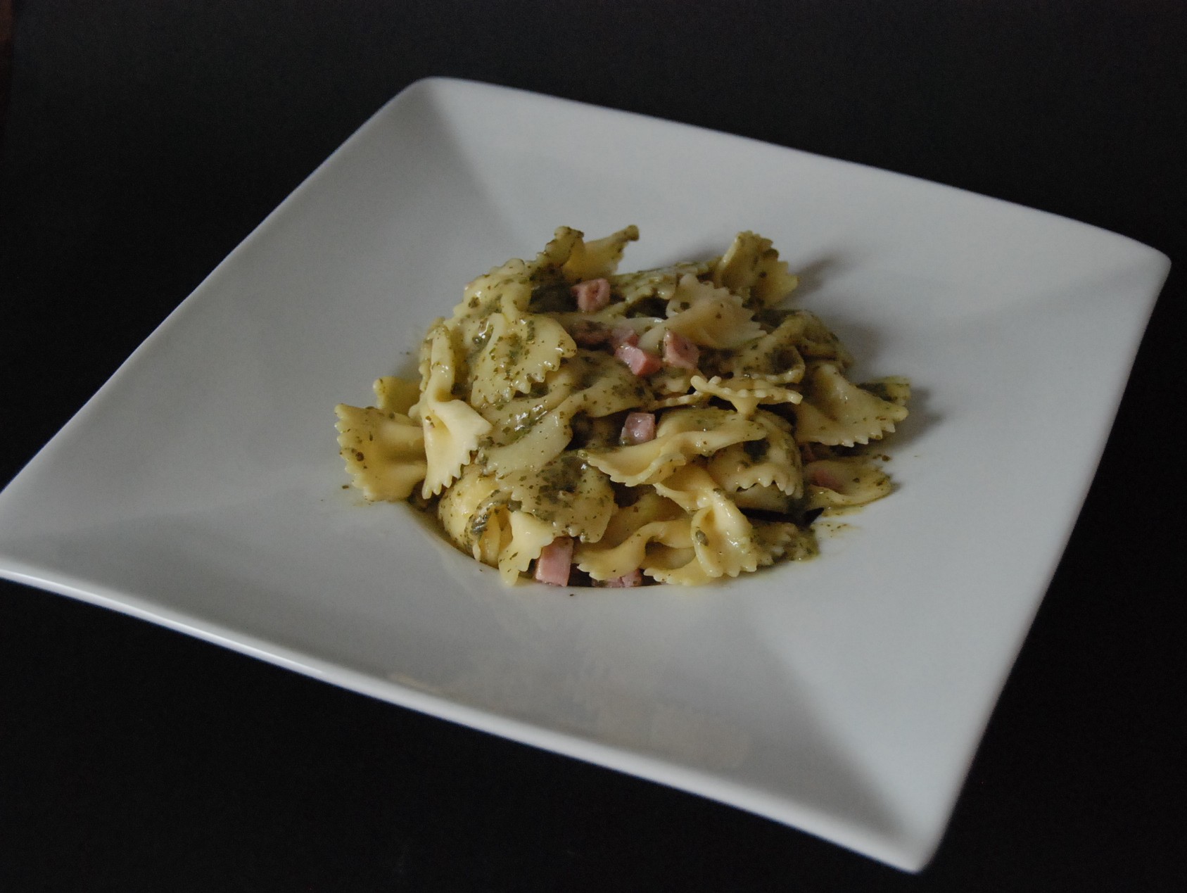 S’ensuivent deux recettes [BIO] : les Farfalles au jambon & et au pesto