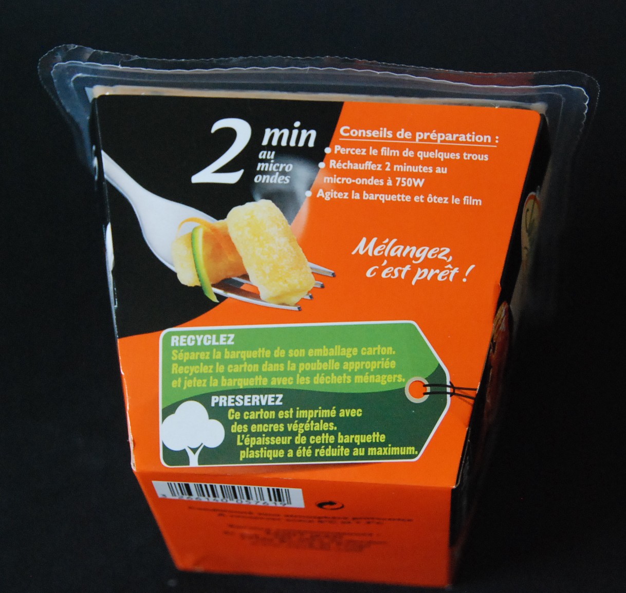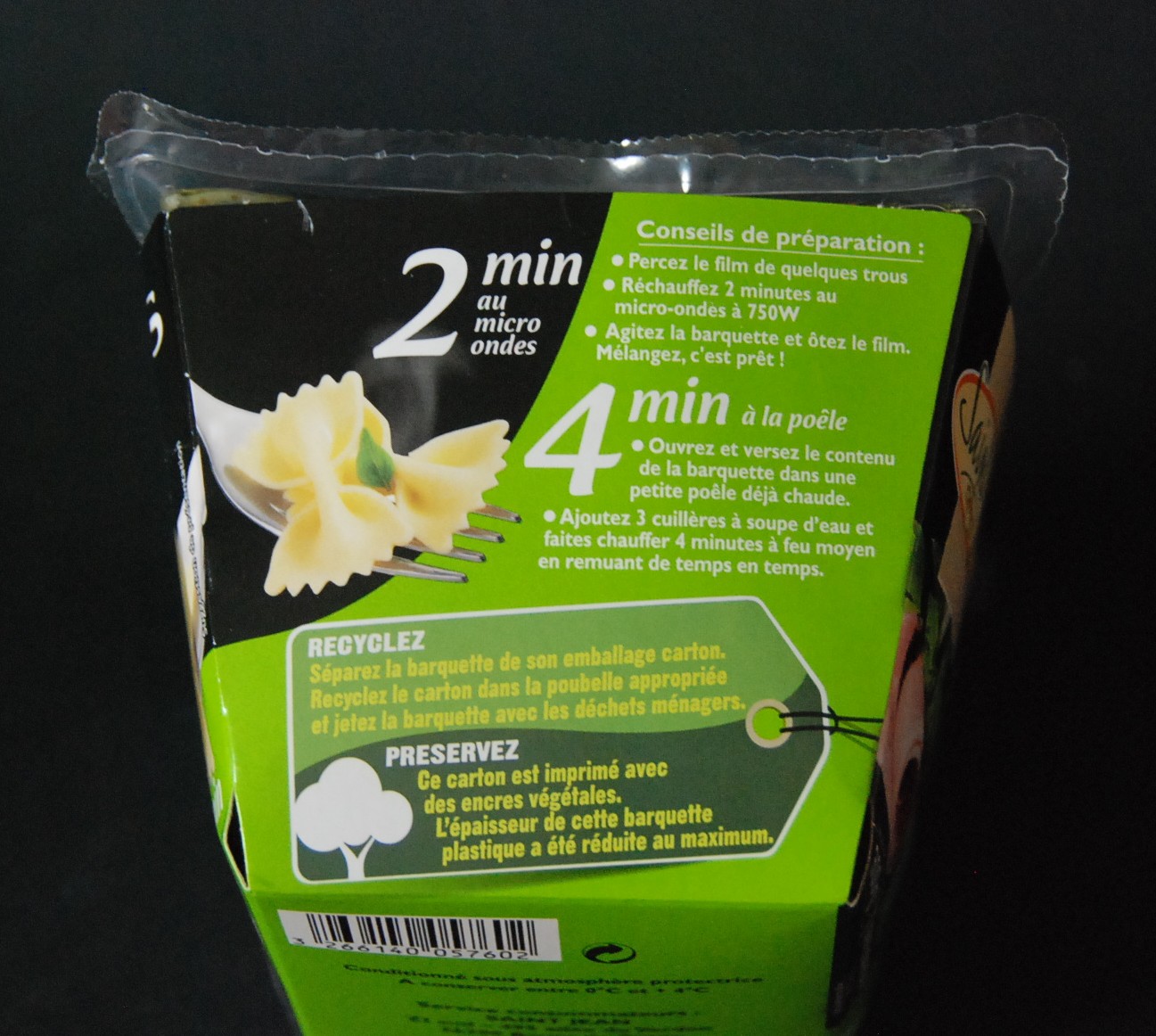 le mode opératoire est ici aussi indiqué sur l’emballage : choix entre le micro-ondes et la poêle