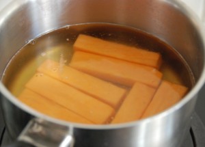 Faire cuire dans le bouillon. (On aurait pu faire cuire les oignons en même temps que la patate douce).