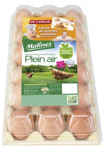 Désormais, quand vous irez acheter vos oeufs, choisissez de préférence les packs x18 oeufs «plein air» Matines , ou les x20 Maxi d’Auge.