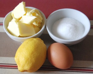 Ingrédients pour le lemon curd (permet de réaliser 200g de lemon curd, il en restera mais on peut le conserver quelques jours au réfrigérateur) (crème au citron, recette issue de l’ouvrage Mes desserts préférés de Pierre Hermé) : 60 g de sucre, 1 citron (zeste + jus), 1 oeuf, 75 g de beurre pommade.