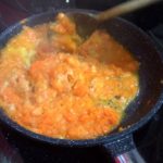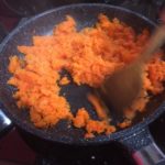 Dans une poêle, faire fondre un peu de beurre sur les 50g restants et ajouter la purée de carottes. La purée de carottes va sécher.