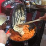 Après le meigou polo, plat familial iranien, Mojgan (toujours dans le cadre des ateliers proposés par Degust & Co) nous a fait découvrir un dessert : le halva havidj, un gâteau aux carottes qui me rappelle ce que j’avais goûté dans les rues de New Delhi : le halwa gajar