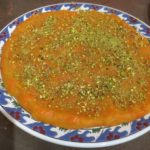 Ingrédients : 4 carottes moyennes, 250g sucre, eau de rose, safran, 100g farine de riz, 50 + 50 g beurre, pistaches crues