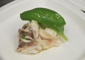 préparé avec un filet d’huile d’olive et du citron et accompagné d’une feuille d’huître
