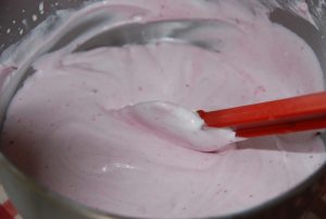 Ingrédients pour la mousse cranberries à faire la veille : compotée de cranberries, 4 feuilles de gélatine de 2g, 400 g de crème liquide entière 35% très froide