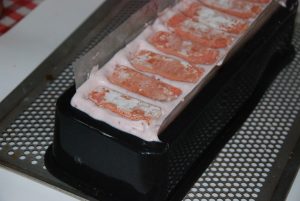 Couler dans un moule bûchette tapissée de rhodoïd. Laisser prendre.